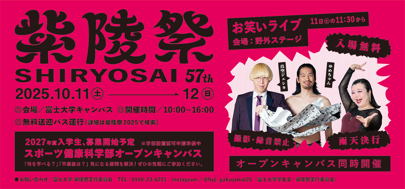 富士大学の学園祭「紫陵祭」を、2025年10月11日(土)・12日(日)の2日間に開催し...