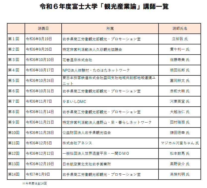 実務経験者(市町役所職員・民間事業者等)など毎回講師が変わるオムニバス形式授業。