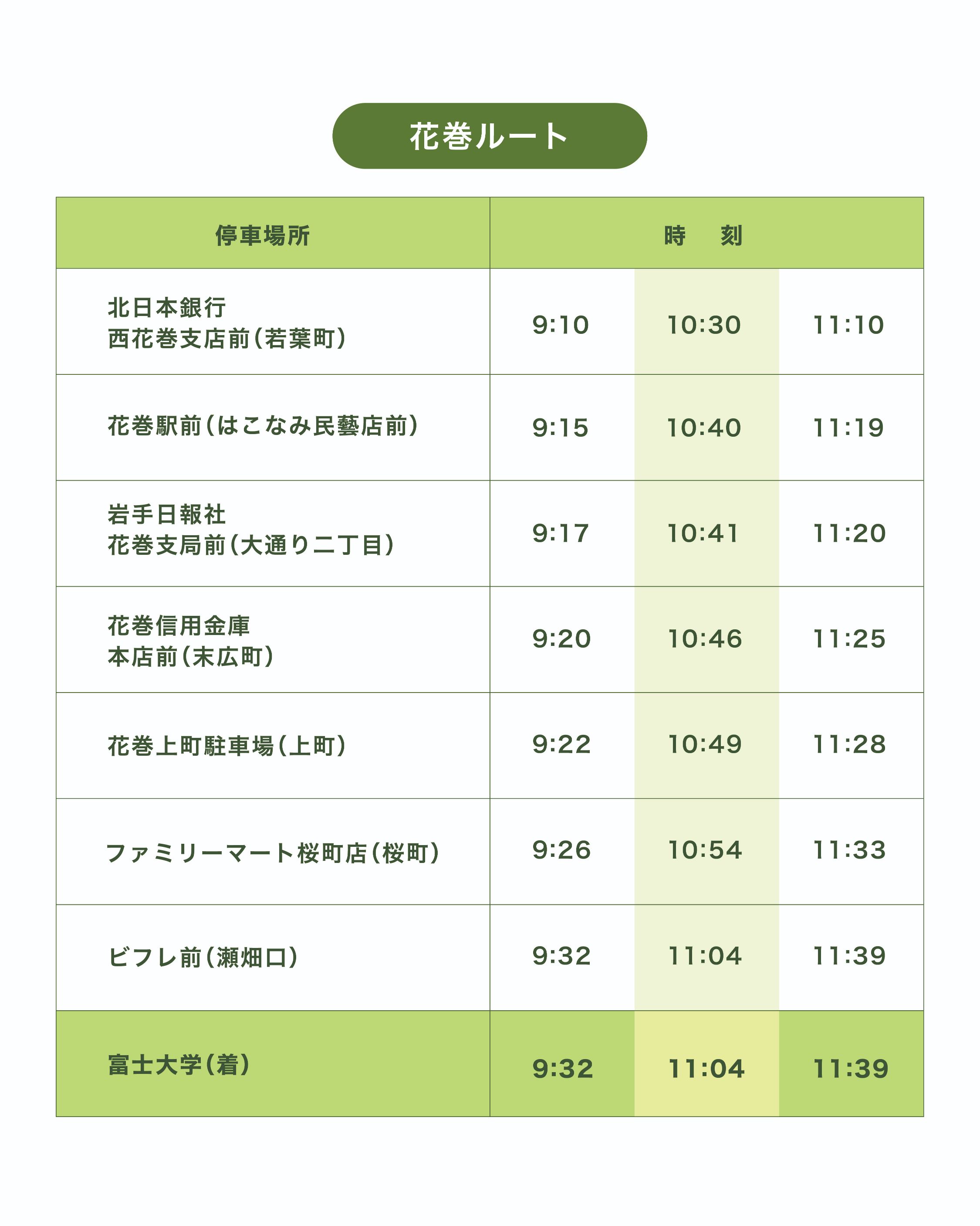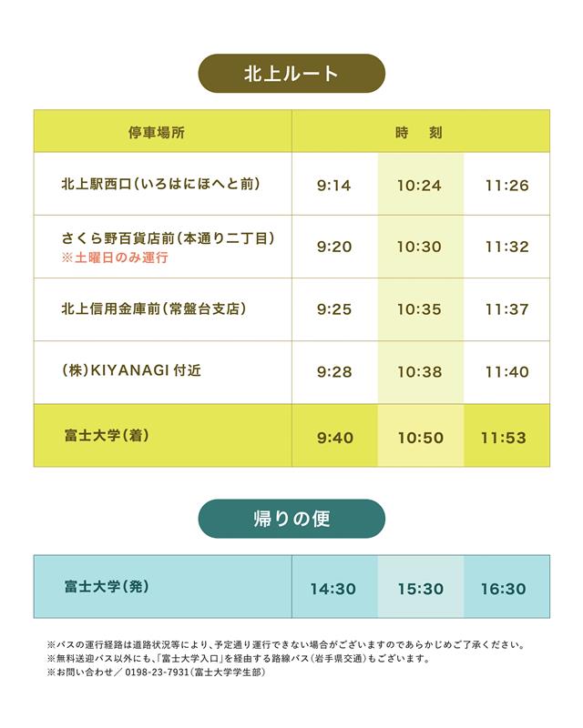 ※北上ルートの「さくら野百貨店前(本通り二丁目)」の停車は10月11日(土)のみとなりますのでご注意ください。
