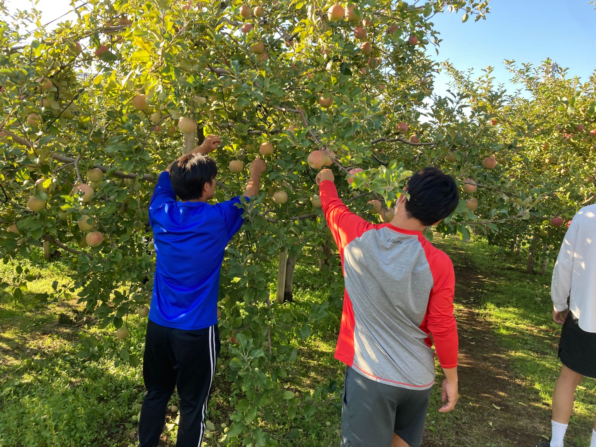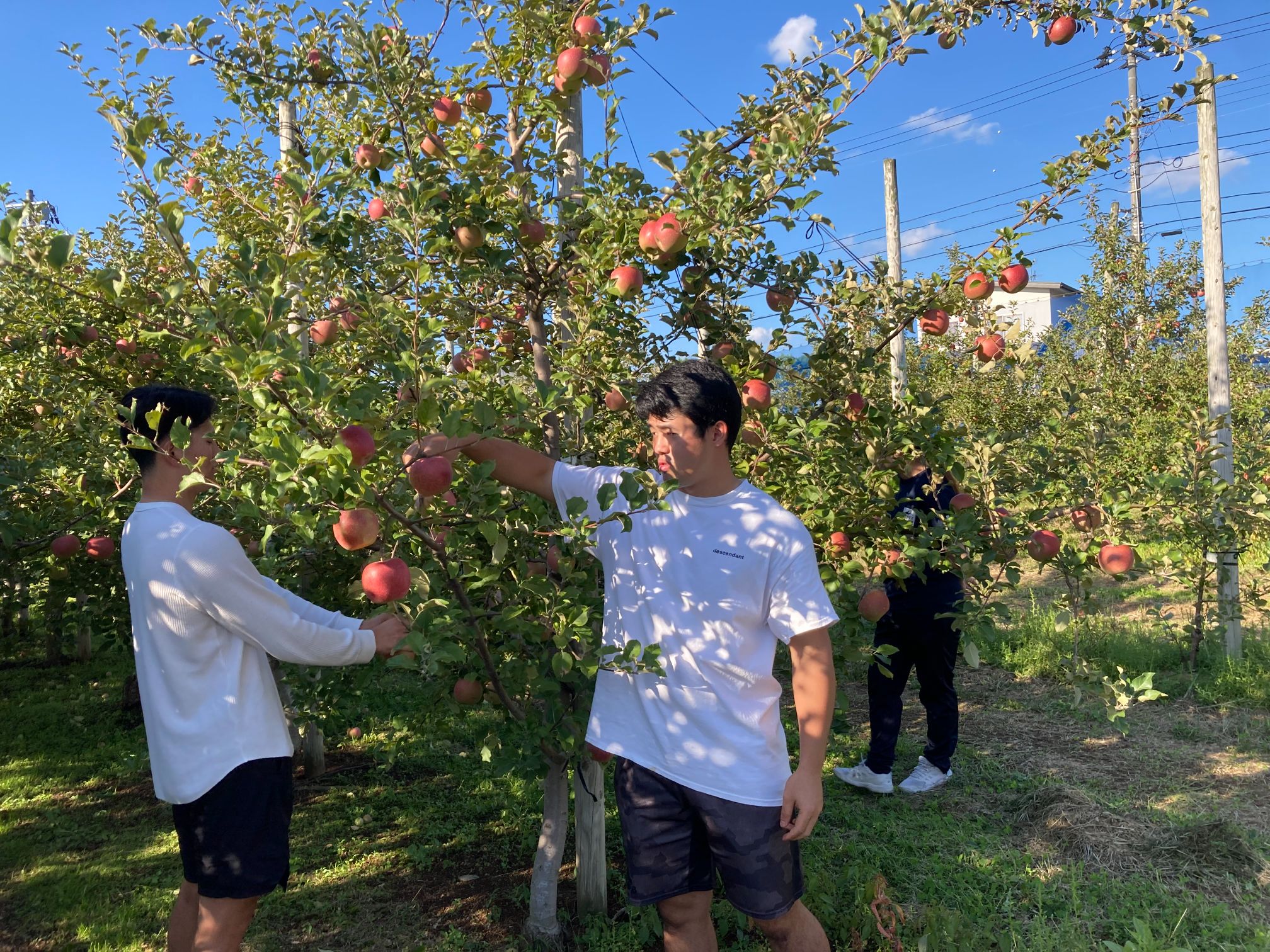 そんな地域の産業に理解を深めようと、海邉健二ゼミの学生たちは7月の摘果作業に続き、今回はリンゴの「葉摘み」に挑戦しました。