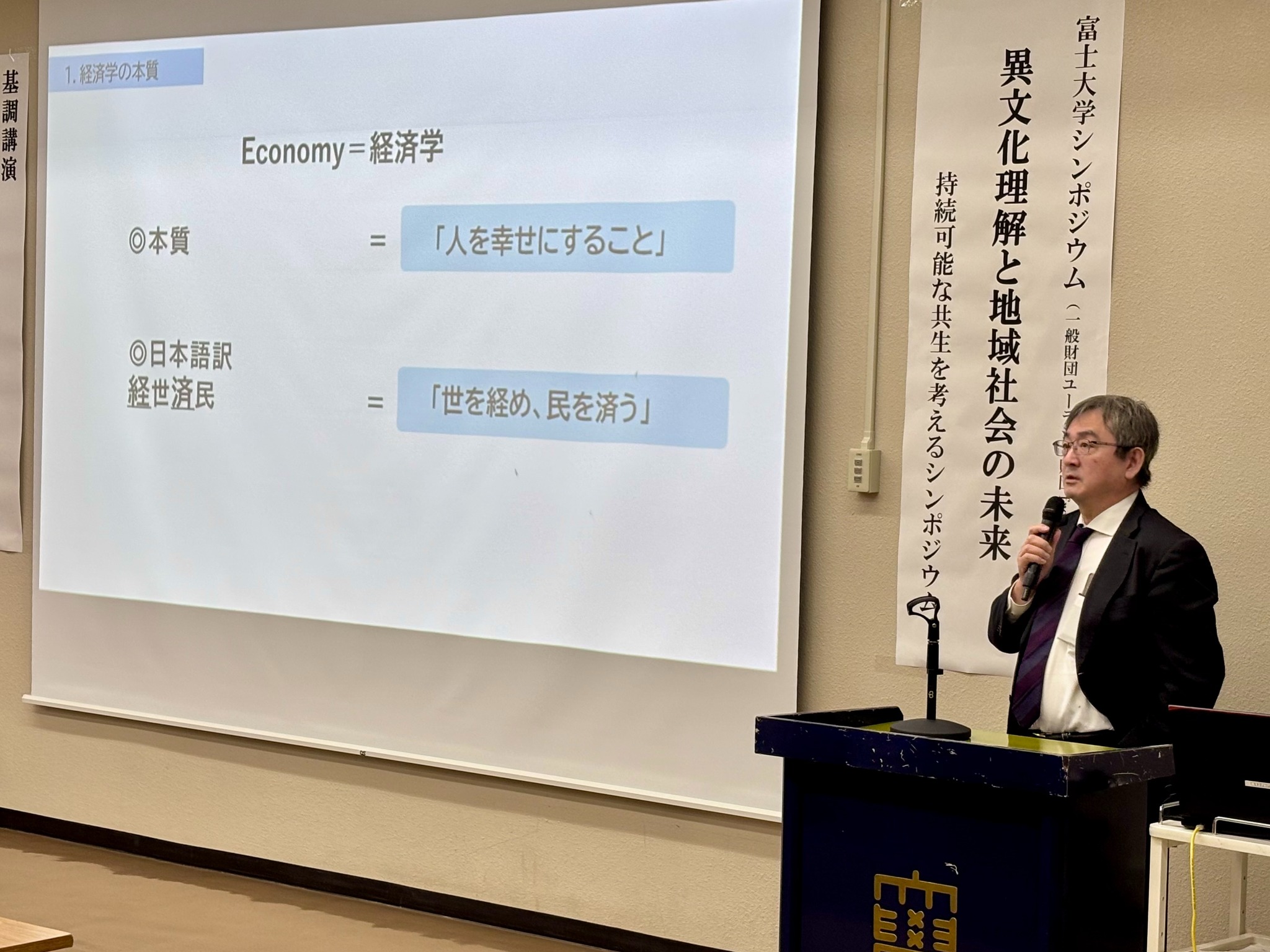 2025年10月12日、今年度の紫陵祭にあわせて大学院経済・経営システム研究科および附属地域経済文化研究所の共催により、シンポジウム「異文化理解と地域社会の未来 ― 持続可能な共生を考える」を開催いたしました。