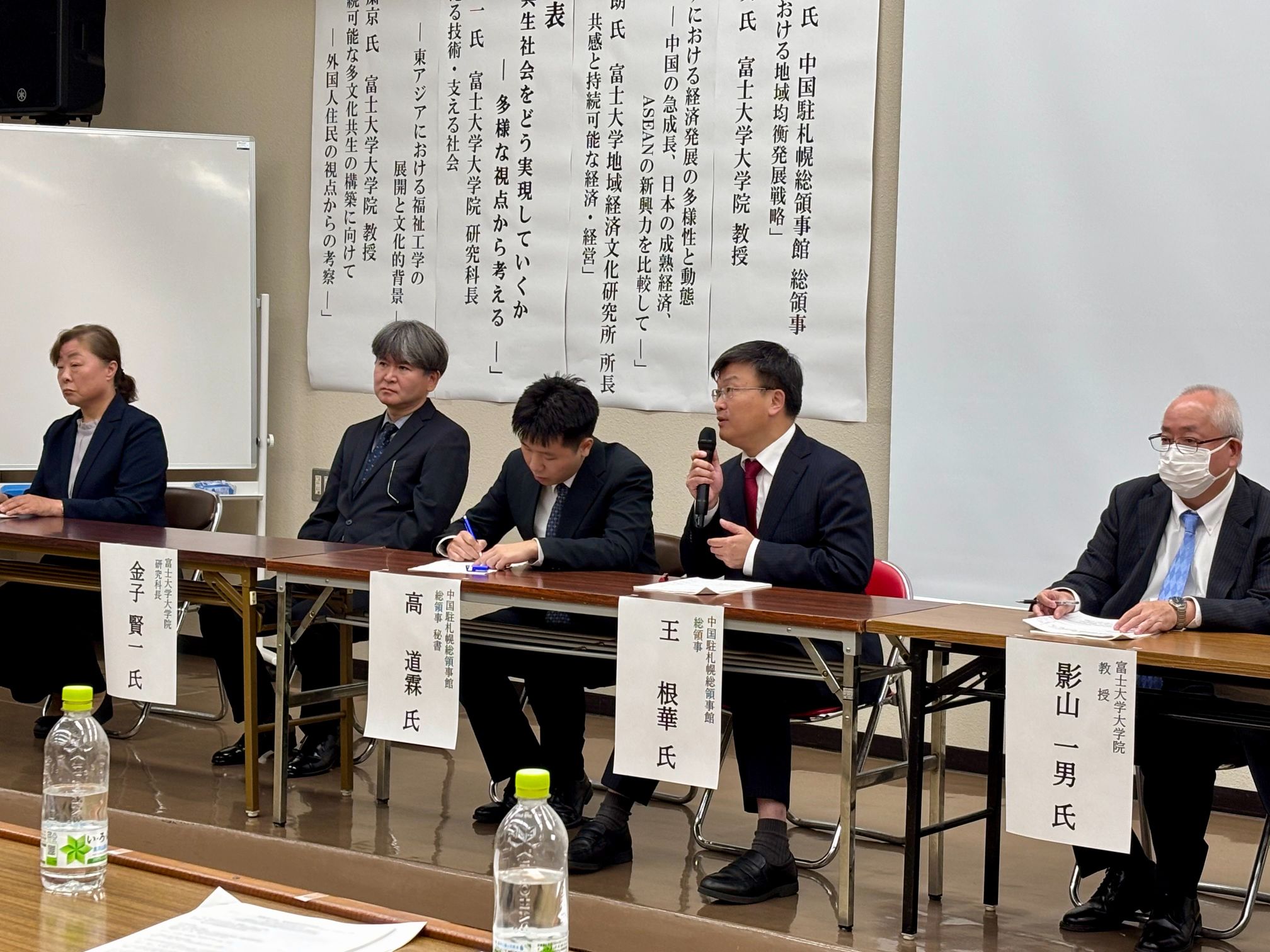 当日は、中国駐札幌総領事館の王根華総領事を特別講師としてお迎えし、「中国における地域均衡発展戦略」と題した基調講演を行っていただきました。
