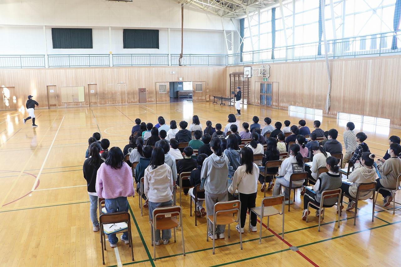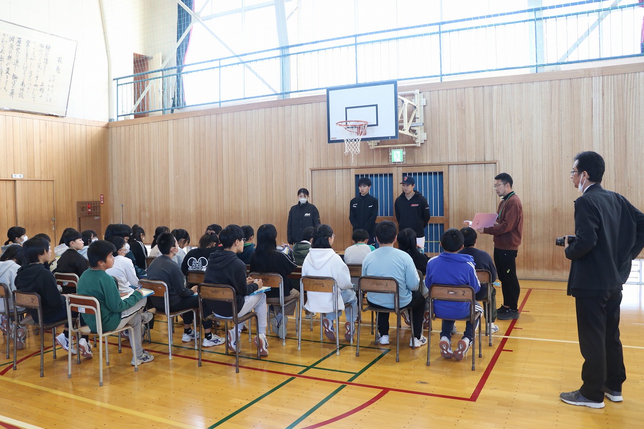 この授業は、地域の大学で学ぶ学生の話を聞くことで、夢の実現に向けて大切なことや日ごろ心がけていることを学び、自らの生活を振り返る機会とすることを目的に、令和元年度から行われており、今年度で7回目を迎えました。