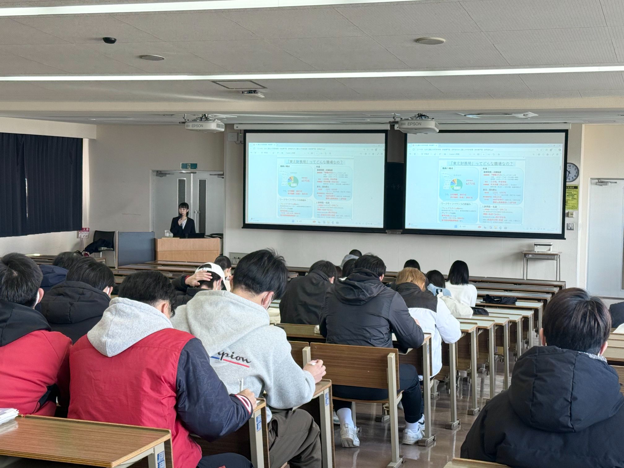 講義では実際の事例を交えながら紹介され、学生からは「こんなに多岐にわたるなんて知らなかった」という声も上がりました。