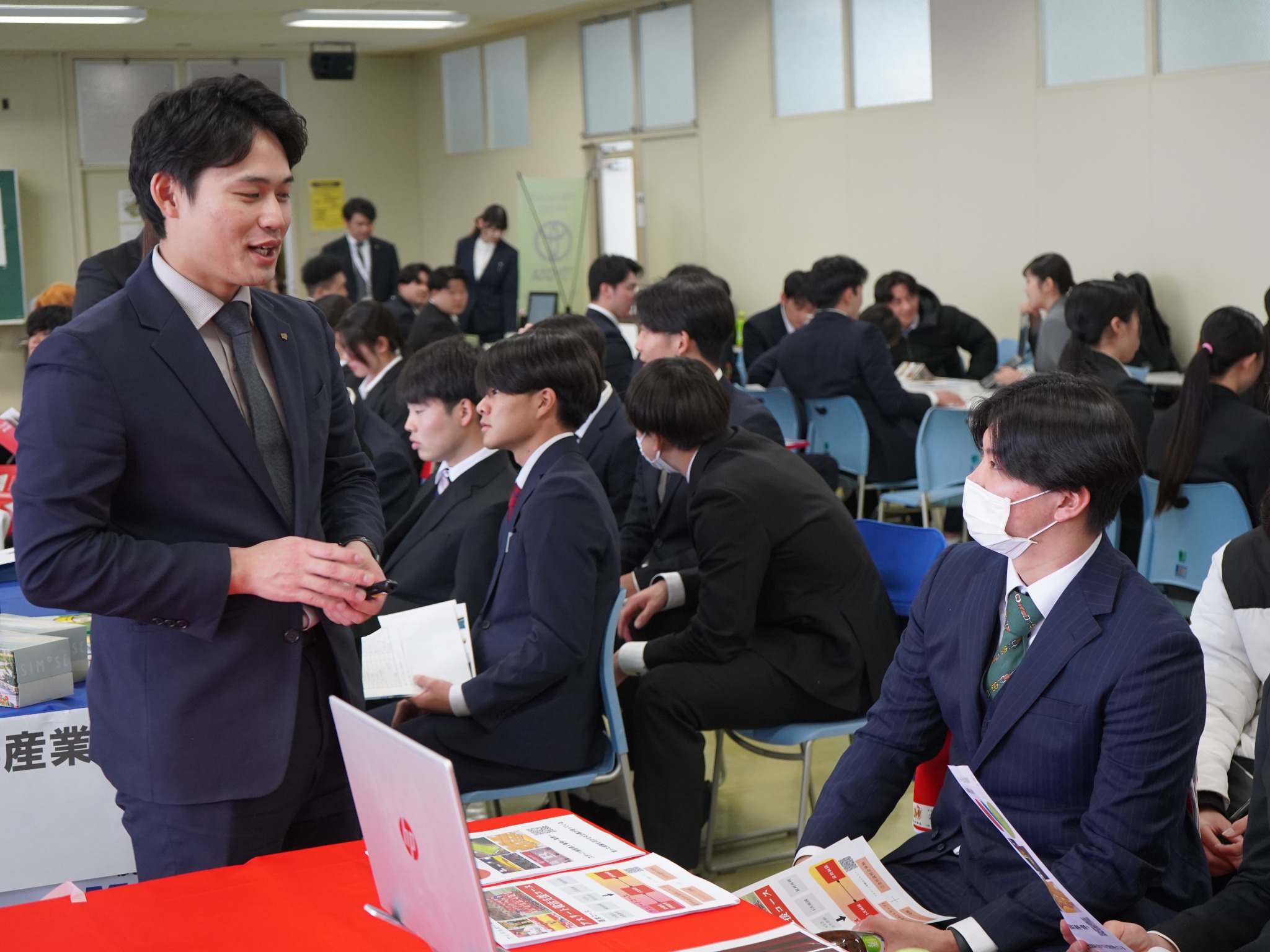 会場には複数のブースが並び、学生たちは気になる業界や企業を自由に回りながら、人事担当者から直接話を聞きました。