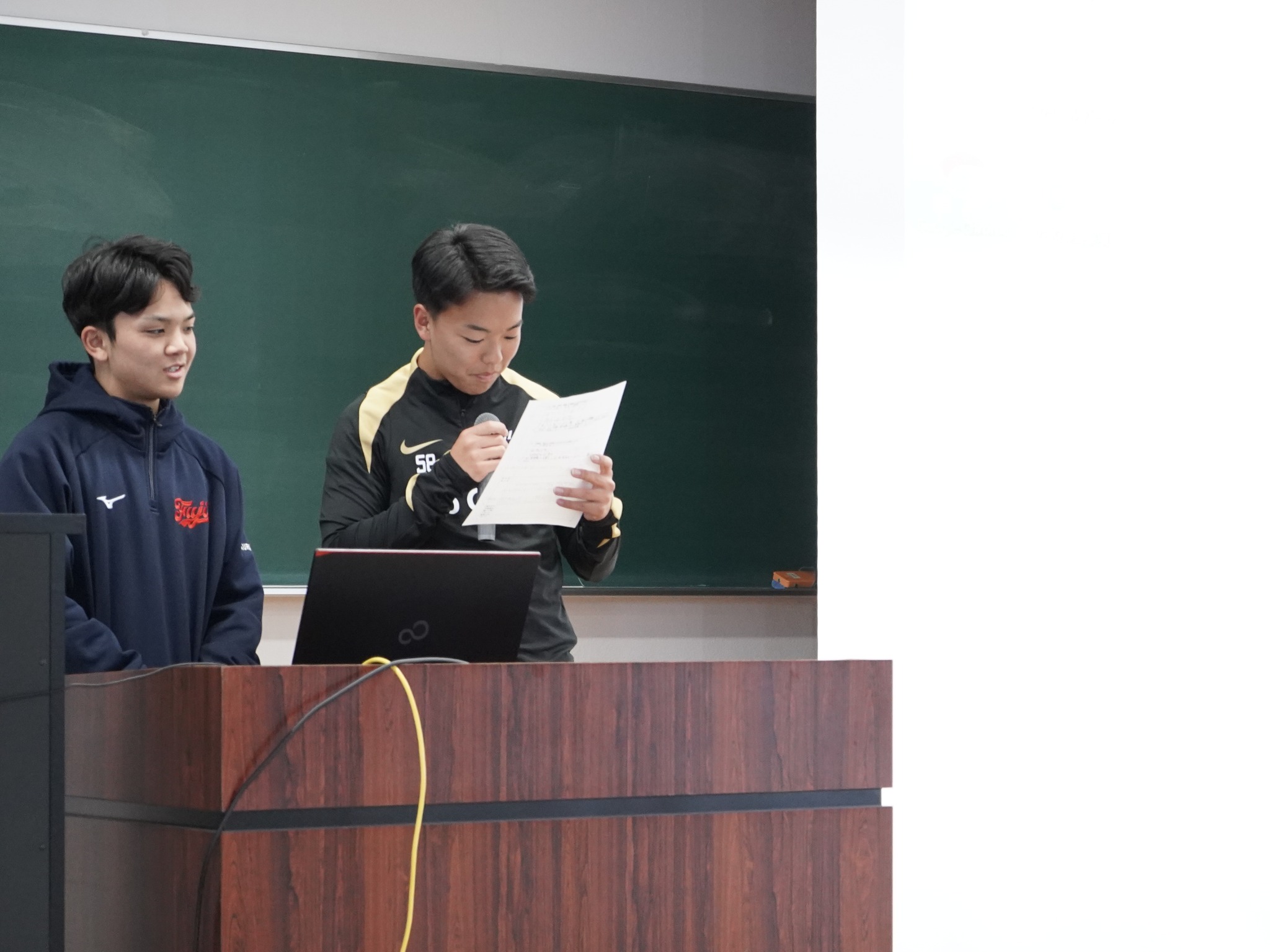 発表では、学修への取り組み方、自発的な活動(部活動・サークル・ボランティア等)を通じて得られる経験、社会・地域・環境への関わり方、そして卒業後に自立した社会人になるために必要なことの4点について、それぞれの視点から考えを発信しました。