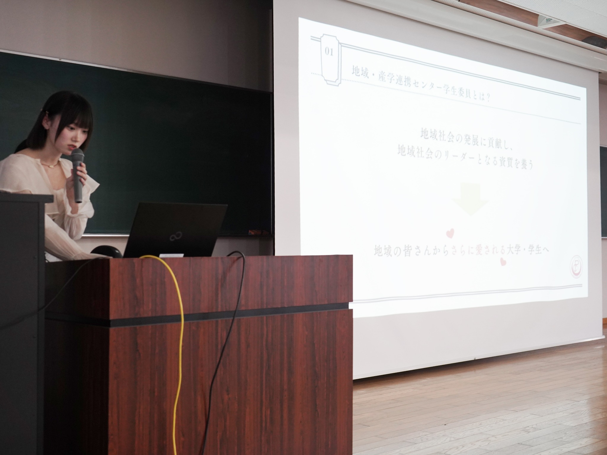 後半は学友会主催による課外活動紹介が行われ、地域・産学連携センター学生委員や学友会など、多彩なサークルが活動内容を紹介しました。